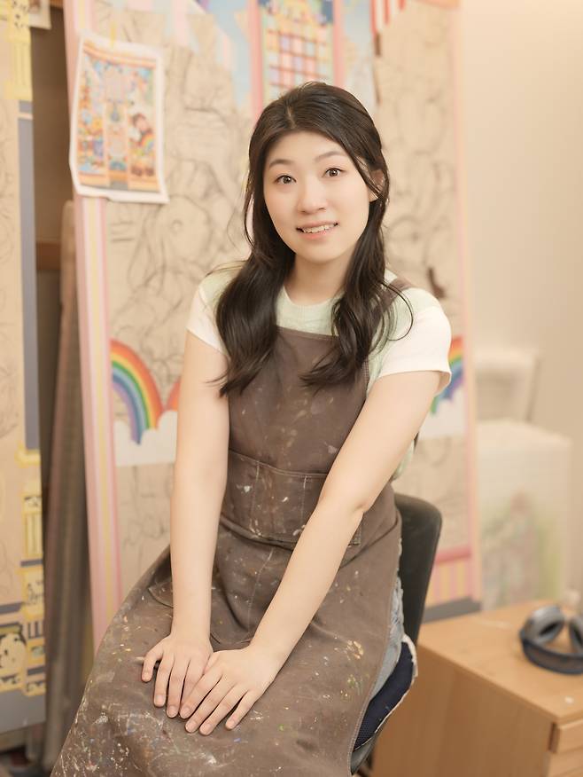 이번 전시의 주제는 '환상 거리에 초대'입니다. 지치고 바쁜 일상 중 이 그림이 걸린 벽을 지나는 동안만큼은 잠시 현실을 잊고 제 환상 거리에서 즐거움과 해방감을 느낄 수 있었으면 좋겠습니다.