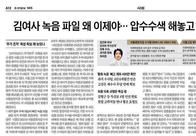 서울고검이 도이치모터스 주가조작 의혹을 재수사하는 과정에서 윤석열 전 대통령 부인 김건희의 조작 관여 정황이 담긴 녹취파일 수백 개를 확보한 것을 놓고 기존 수사팀의 '부실수사' 논란이 이어지고 있다.