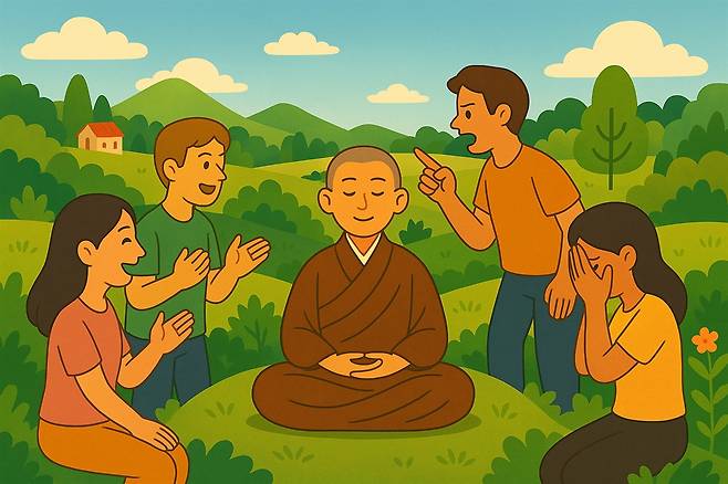 이처럼 우리의 마음은 칭찬과 비난에 쉽게 흔들립니다. 그리고 그렇게 흔들릴 때, 생각들이 꼬리에 꼬리를 물고 일어나기 시작합니다. 그게 바로 번뇌의 시작입니다. '더 인정받고 싶은 마음', '실수하면 안 된다는 마음', '나는 괜찮은 사람이어야 한다는 생각' 같은 것들을 꼭 쥐고, 스스로를 괴롭히는 거죠.