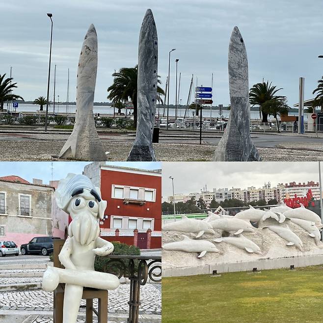 ▲ 세투발을 대표하는 어류 조형물: 정어리, 갑오징어, 돌고래