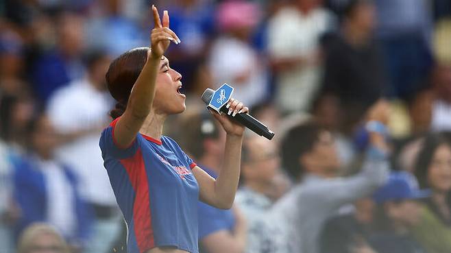 ▲ 다저스타디움에서 스페인어로 미국 국가를 부르는 가수 네자