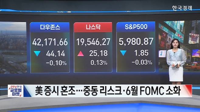 美 증시 혼조...중동리스크·6월 FOMC 소화-[글로벌 시황]