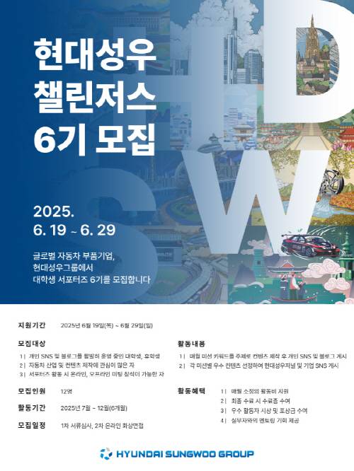 현대성우그룹이 대학생 서포터즈 ‘현대성우 챌린저스’ 6기를 모집한다고 밝혔다.