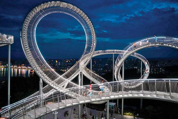 바다가 하염없이 펼쳐지는 산꼭대기 위에 우주선이 불시착했다. '예술 위, 구름 위를 걸으며 마치 공간과 우주를 유영한다’는 의미를 담아 이름 붙인, 길이 333m에 달하는 스페이스워크가 그 주인공이다. '전망대계의 롤러코스터’라 불리는 스페이스워크는 입장료가 무료인 데다 높이 25m로 그리 높지 않아 누구나 도전할 수 있다. 하지만 그리 호락호락하지는 않다. 그 위에 올라서면 다리가 후들후들, 담력 테스트가 따로 없기 때문이다. 바람이 불 땐 두 발을 내디디고 있는 바닥과 두 손으로 꼭 부여잡고 있는 손잡이 모두가 휘청이고, 마음도 휘청인다.