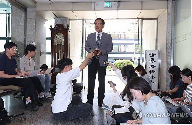 (서울=연합뉴스) 김도훈 기자 = 순직 해병 수사 방해 의혹 사건을 수사하는 이명현 특별검사가 19일 서울 서초구 자신의 사무실로 출근하며 취재진 질문에 답하고 있다. 2025.6.19