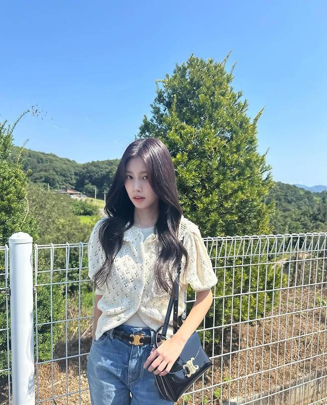 장원영은 크롭컷 슬리브리스와 와이드핏 데님을 매치했다. 사진에서 보이듯 크롭핏 상의와 와이드핏 팬츠 조합은 바디라인의 굴곡을 강조, 보완해 여성스러운 느낌을 살려주는 효과가 있다.