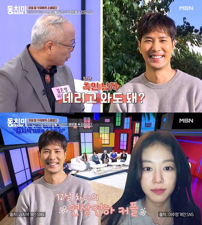 김지석 아버지는 "언제나 데리고 오려나 했는데 인사를 시키더라. 여자친구가 12살 연하 배우 이주명이었다. 도둑놈 소리 많이 들었다. 그런데 세대차이가 있어서 소통이 잘 안 되는 거다. 서로 추구하는 것도 다르고. 그래도 아들이 빨리 결혼했으면 하는데 아들이 신예 배우인 여자친구를 배려하더라. 여자친구의 앞날을 막기 싫다고 했다"며 "여자친구가 생겨서 안심은 되는데 손주는 언제나 볼라나 조바심이 난다"고 솔직한 마음을 전했다.