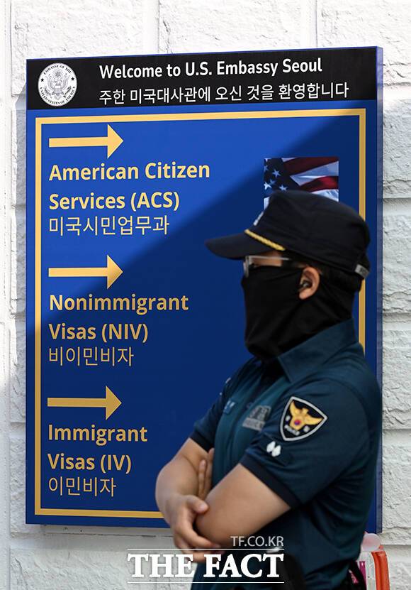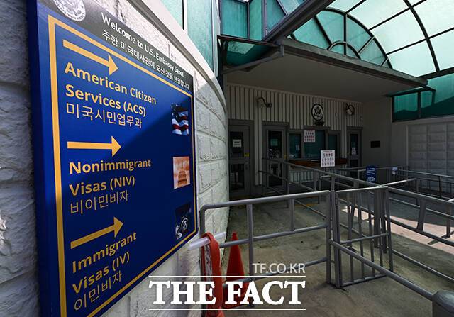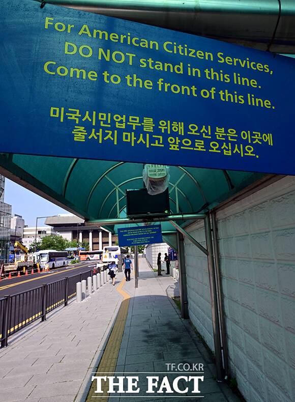[더팩트ㅣ임영무 기자] 미국 트럼프 정부가 유학생 비자 접수를 재개 한다는 소식이 알려진 19일 오전 서울 종로구 세종대로 주한미국대사관의 성조기가 바람에 날리고 있다. 이날 주한미국대사관은 '노예해방 기념일' 공휴일을 맞아 공식 업무는 하지 않는다.