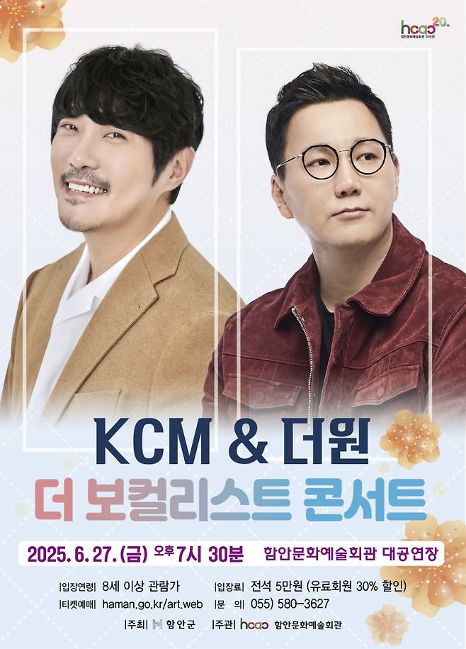 함안군은 6월27일 오후 7시30분 대한민국 감성 보컬의 정수를 보여주는 두 아티스트 KCM과 더원(THE ONE)이 함께하는 특별 콘서트 더 보컬리스트 KCM & 더원〉을 함안문화예술회관 대공연장에서 개최한다.