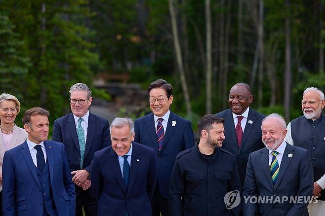 ◆ 탁현민> G7국가끼리 서로 되게 친하니까 사실은 그런 스킨십이 자연스럽게 나오고 이제 초청 국가의 정상들은 대개 특히나 이재명 대통령은 이번에 처음 보니까. 근데 그럼에도 불구하고 친근한 모습들이 연출이 되더라고요. 근데 이제 그런 스몰토크 같은 경우는 통역 없이 그냥 대통령이 그냥 하는 경우도 있고 물론 그게 말 그대로 스몰토크니까 크게 의미나 비중을 주지 않고 근데 이제 그 화면에서도 보면 아시겠지만 근접 통역이 있어요. 그래서 서로 의사소통하고 말씀 나누는 데는 큰 지장은 없습니다.