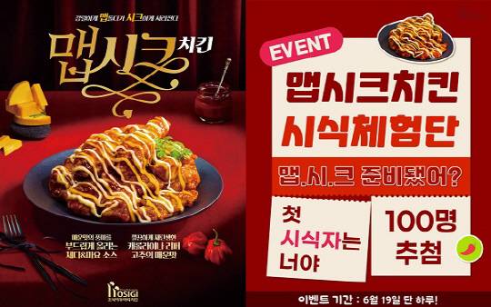 신메뉴 출시를 기념해, 호식이두마리치킨은 6월 19일 단 하루, 공식 인스타그램 계정에서 '맵시크치킨'을 맛볼 수 있는 시식체험단 100명을 모집하는 이벤트를 진행한다. 트렌디한 매운맛을 누구보다 먼저 경험하고 싶은 소비자라면 놓치지 말아야 할 기회다.