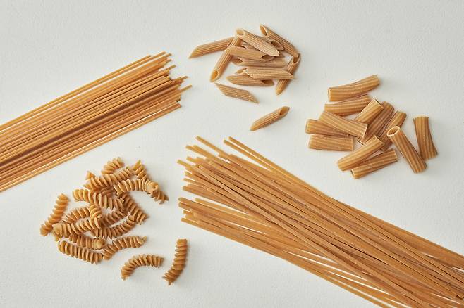 흰 밀가루 파스타는 정제 과정을 통해 혈당 속도를 조절하는 식이섬유가 크게 줄어든다. 식품의약품안전처 식품영양성분자료에 따르면 일반 밀가루 100g의 식이섬유는 2.7g에 그친다. 밀가루 면의 혈당 지수(GI·혈당의 상승 속도)는 80으로 ‘고혈당’에 속한다.