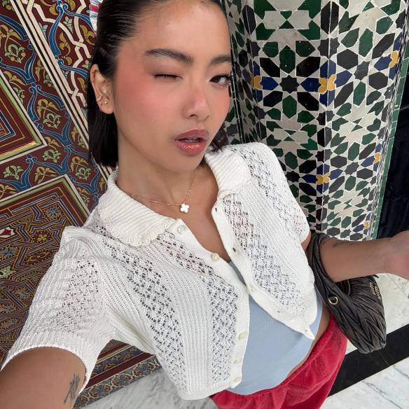갑자기 포인텔이 뜨는 이유? 로맨틱하면서 친숙한 느낌의 ‘코티지코어’가 트렌드로 떠오르면서 포인텔 아이템이 길거리로 쏟아져 나왔다. 누군가는 빈티지한 감성과 ‘그랜마코어’의 소재 중 하나로, 누군가는 핫한 ‘토마토 걸’, ‘스트로베리 걸’과 같은 계절 과일 특유의 러블리한 무드를 보여주기 위한 소재로 포인텔 아이템을 적극 활용하게 된 것. 새빨간 레드 팬츠에 포인텔 니트를 매치하면 가든 파티 룩으로도 제격이다.