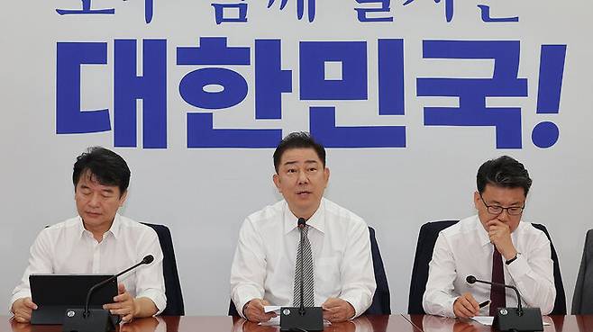 ▲ 더불어민주당 김병기 당대표 직무대행 겸 원내대표가 19일 서울 여의도 국회에서 열린 정책조정회의에 참석해 발언하고 있다.