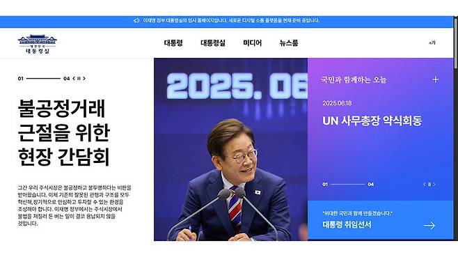 이재명 정부 출범 이후 한동안 운영이 중단됐던 대통령실 홈페이지가 임시로 공개됐습니다.