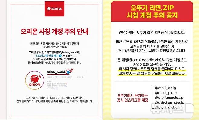 롯데웰푸드 이어 오뚜기·오리온까지…식품업계 사칭 계정 '주의보' 확산