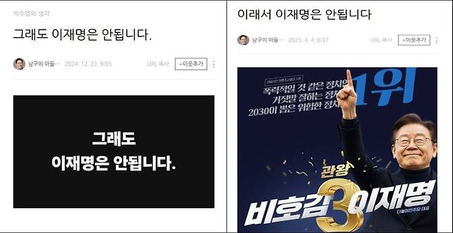 | ▲ 박수영 국민의힘 의원이 자신의 블로그에 올린 글 모음. |