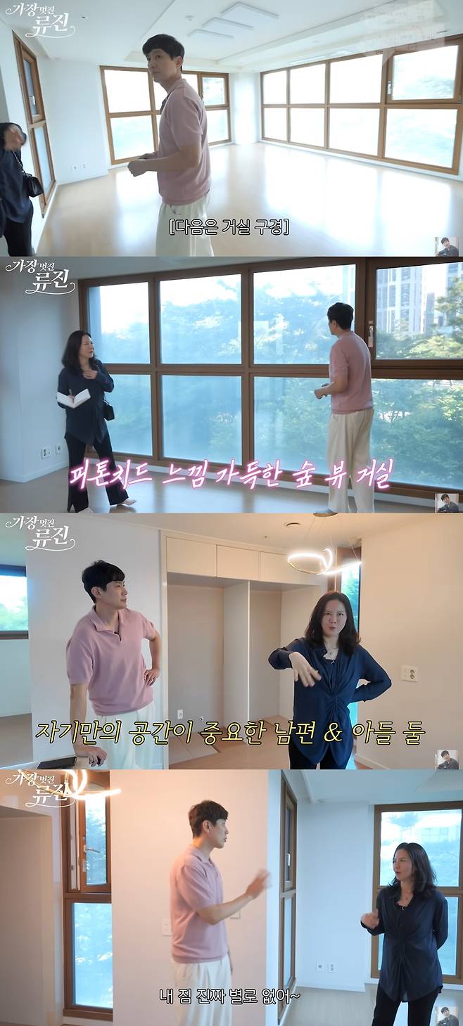 제작진은 류진의 아내에게 집 구할 때 가장 중요하게 생각했던 것이 무엇이냐 묻자, 아내는 "각자 자기 섹션이 있어서 자기만의 공간을 활용할 수 있는 공간 확보"라며 "아빠가 잔짐이 많다. 그 짐을 놓을 공간이 작았다"라고 말했다.