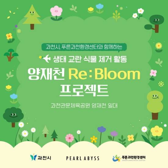 '양재천 Re : Bloom 프로젝트'는 과천 시민들이 자주 찾는 생태공간 양재천 일대에서 생태교란 식물을 제거해 건강한 생태계를 복원하는 활동이다. 본 활동은 과천시청, 푸른과천환경센터와 협력해 진행했다.