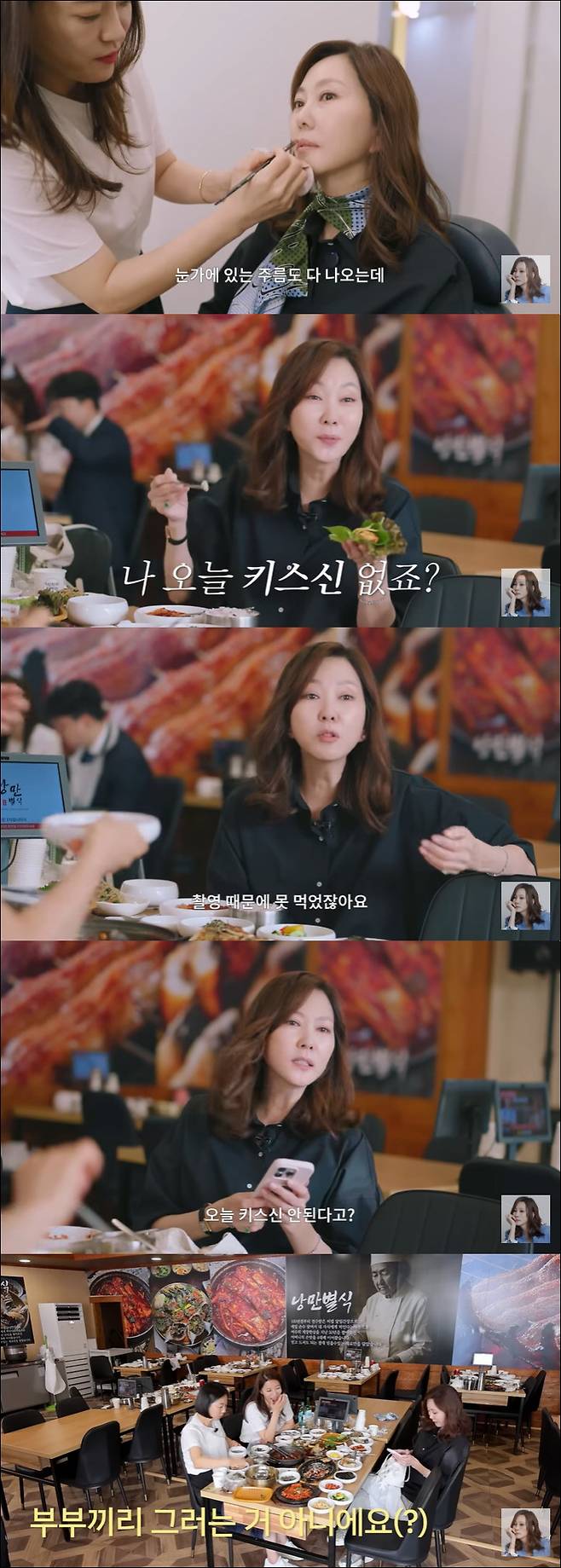 수정 메이크업을 마친 후 김남주는 절친이기도 한 원장과 함께 근교 데이트에 나섰다. 간장게장과 갈치조림을 먹으러 간 김남주. 크게 한 쌈을 싸며 김남주는 "나 오늘 키스신 없죠?"라고 농담했다. 김남주는 "드라마할 때 키스신 있으면 진짜 신경 쓰이잖아. 스태프들은 가글 준비해 주고"라고 너스레를 떨었다.