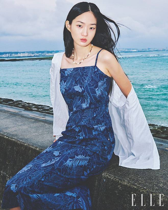 트로픽 드레스는 11만9천원, The North Face. 화이트 셔츠는 Àvie Muah , 네크리스는 Rubati.