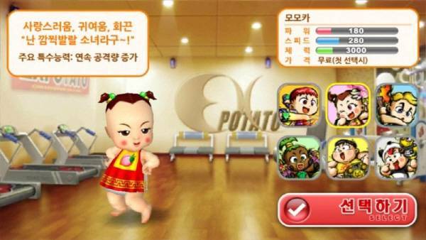 조기자: 아시겠지만, 컴온베이비의 핵심 게임 중에 하나가 바로 '뺨때리기' 잖아요. 각 캐릭터 별 성능은 없지만, 이 게임의 히로인 격 캐릭터인 모모카가 등장하면 더 아픈 느낌이 듭니다.