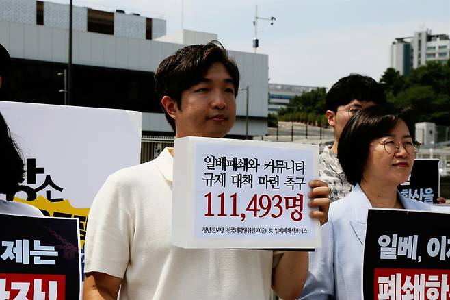 19일 오전 11시, 진보당 정혜경 의원과 청년진보당 전국대학생위원회, 일베폐쇄 서포터즈 소속 대학생과 청년들은 "일베폐쇄 촉구 서명운동을 벌여 11만 1493명이 동참했다"며 "더이상 일베 폐쇄를 미뤄선 안 된다"고 촉구했다.