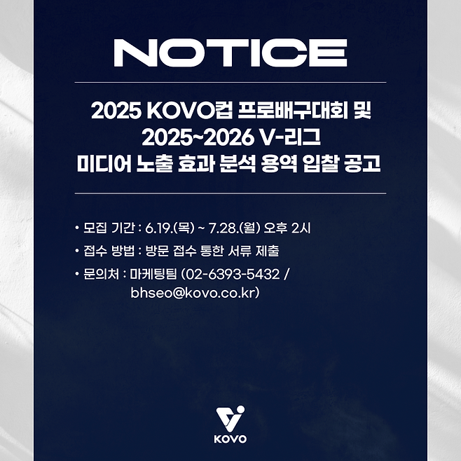 KOVO, 2025 컵대회 및 25-26시즌 리그 미디어 노출 용역대행 업체 모집