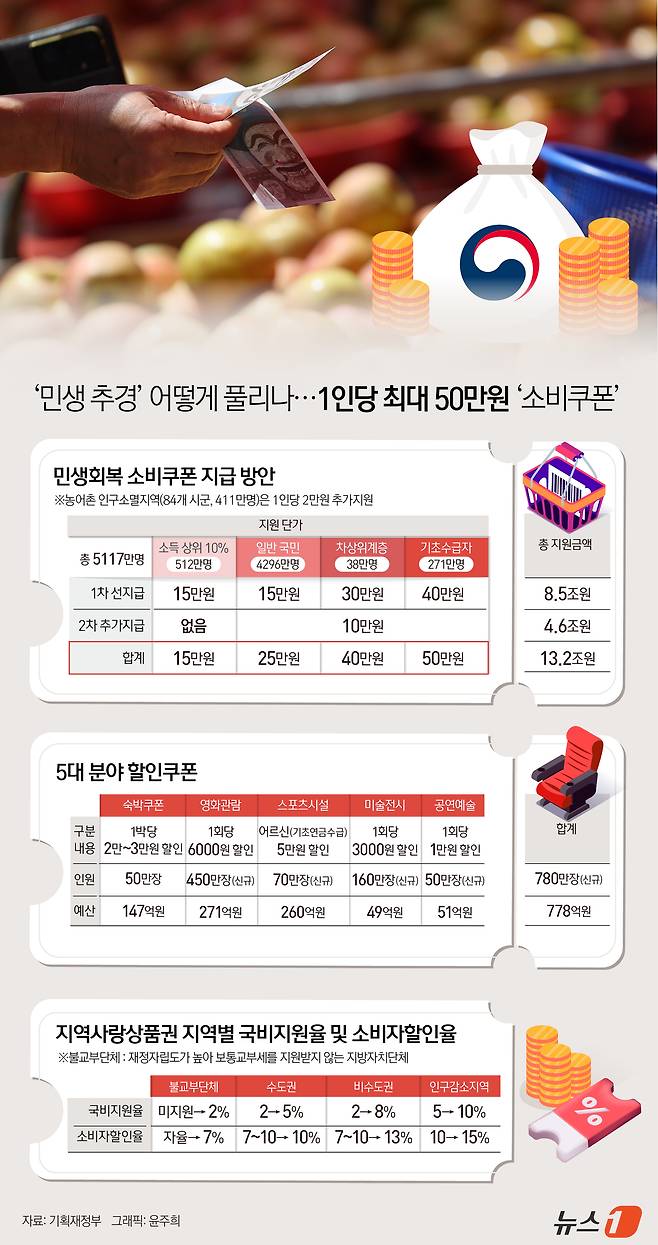 [오늘의 그래픽] '민생 추경' 어떻게 풀리나…1인당 최대 50만원 '소비쿠폰'
