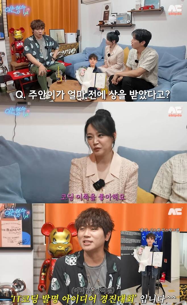 케이윌이 "주안이가 얼마 전에 상을 받았다더라"고 운을 띄우자 김소현은 "아들이 코딩을 좋아한다"고 입을 뗐다.