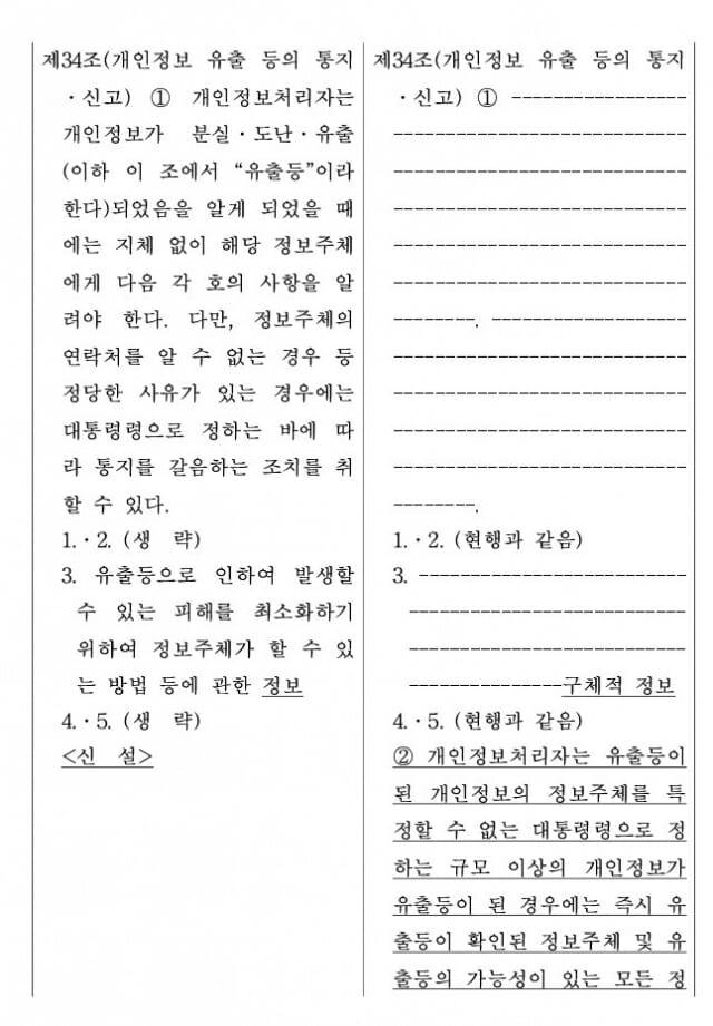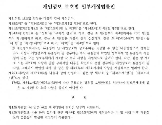 개인정보 보호법 개정안은 대규모 개인정보 유출이 발생한 경우, 기존처럼 홈페이지 공지에 그치지 않고 정보주체에게 개별 통지를 원칙적으로 의무화 했다. 유출 규모가 대통령령 기준을 초과하거나 정보주체 식별이 가능한 경우에는 예외 없이 개별 통지를 하도록 명문화해 통신사들의 책임 회피를 원천 차단한다. 법안 시행은 공포후 6개월이다.