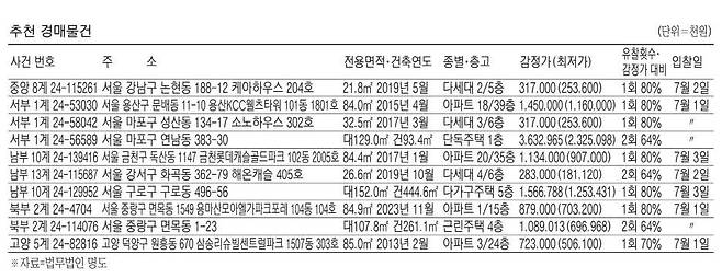 매각 일자는 1일, 서울남부지방법원 경매 11계다.