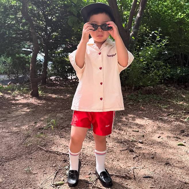 공개된 사진 속 준범 군은 등원길 깜찍한 옷을 입고 카메라 앞에서 포즈를 취하고 있다. 특히 빨간색이 포인트로 들어간 셔츠와 숏팬츠, 그리고 구두로 제이쓴의 패션 센스가 돋보여 눈길을 끌었다.