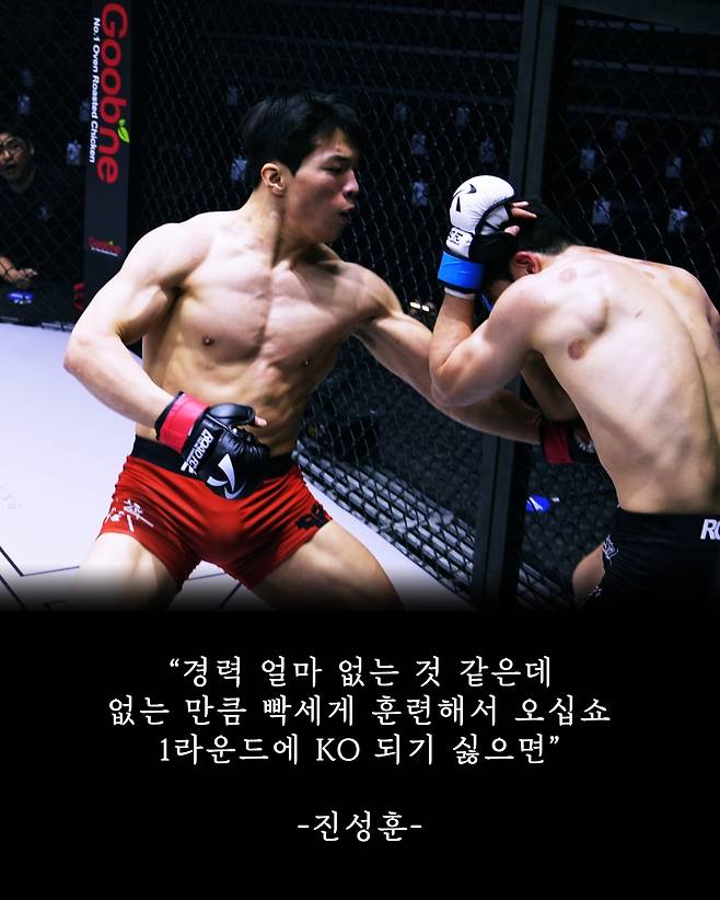 진성훈은 꾸준한 운동으로 아마추어 무대에서 두각을 드러내 드디어 로드FC 프로 데뷔전을 앞두게 됐다.