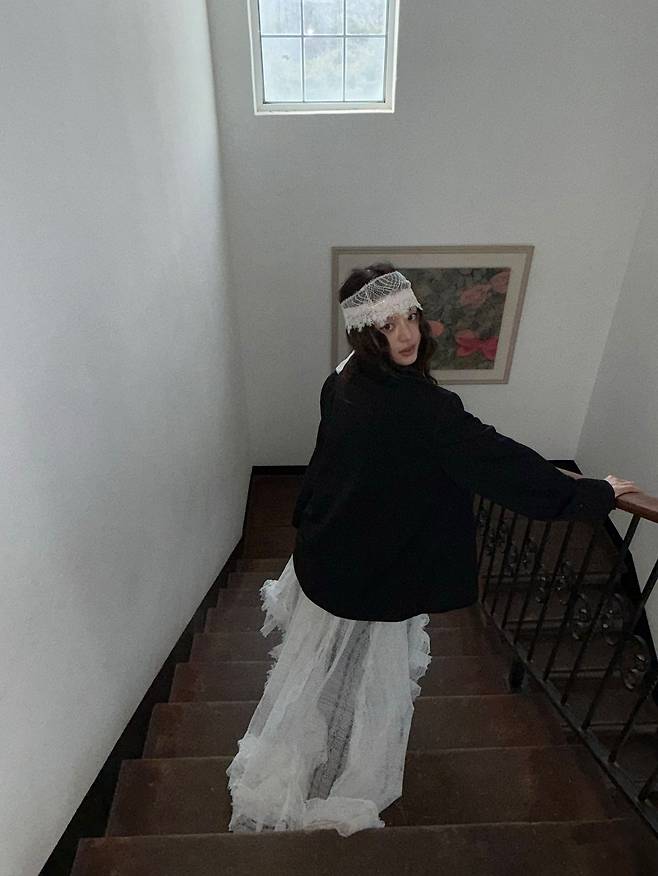 조금 더 가볍고 실용적인 아이템을 원한다면 민주 의 스타일링이 참고할 만합니다. 얇은 실로 짜인 패브릭 을 머리에 두르면 나만의 크로셰 헤어밴드 를 만들 수 있어요. 섬세한 레이스 패턴 덕에 보헤미안 감성이 제대로 살아나는 건 덤입니다. 페스티벌이나 야외 활동에도 잘 어울리는 스타일이죠. 이때는 머리를 뒤로 묶기보다 민주처럼 자연스럽게 풀어 내리는 걸 추천해요. 흐르는 머릿결 덕분에 레이스 특유의 여리여리한 무드가 훨씬 잘 살아나거든요.