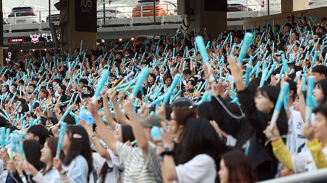 ▲ 지난달 30일 경남 창원NC파크에서 열린 프로야구 2025 신한 SOL 뱅크 KBO리그 한화이글스와 NC다이노스 경기에서 팬들이 응원하는 모습
