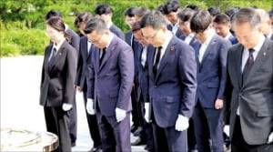 한화에어로스페이스, 한화시스템, 한화오션 등 한화 방위산업 3사는 19일 국립서울현충원을 찾아 순국선열과 호국영령을 위해 참배(사진)했다. 6·25전쟁 75주년을 앞두고 연 이날 참배에는 손재일 한화에어로스페이스·한화시스템 대표, 어성철 한화오션 특수선사업부장(사장) 등 방산 3사 임직원 130여 명이 참석했다.