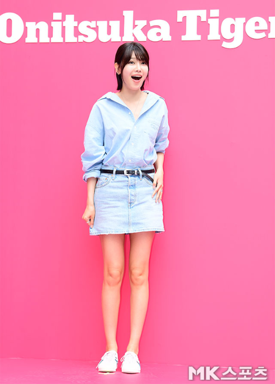 19일 서울 강남구 신사동에서 진행된 오니츠카타이거 이벤트에 참석한 수영은 데님 셔츠와 스커트를 매치한 청청 패션으로 눈길을 사로잡았다.