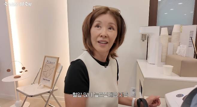 이후 병원 접수를 마친 이미숙은 가장 먼저 혈압 체크를 진행했다. 검사 결과 혈압수치는 147/71이었고, 이를 본 이미숙은 "왜 이렇게 높냐. 처음이다. 보통 100에 80 이랬는데, 나 고혈압 된 거냐. 한 번도 이래본 적이 없는데"라며 당황해했다.