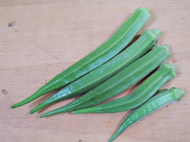 | ▲ 오크라는 고추처럼 생겼지만 끈적끈적한 전혀 다른 질감을 가지고 있다. |