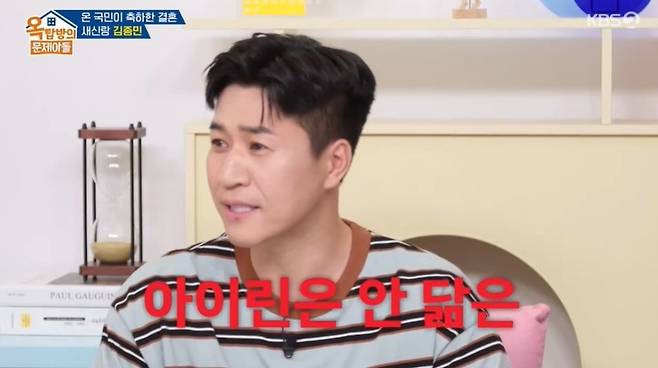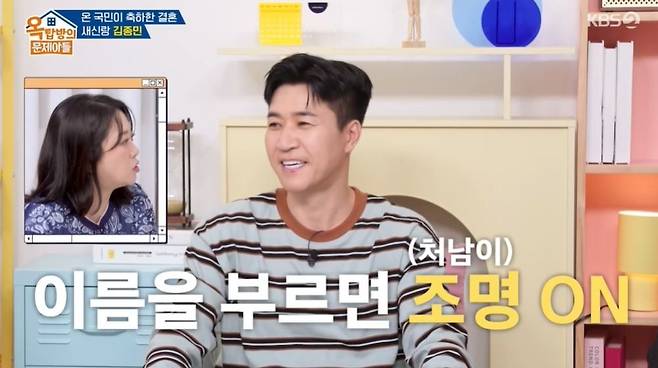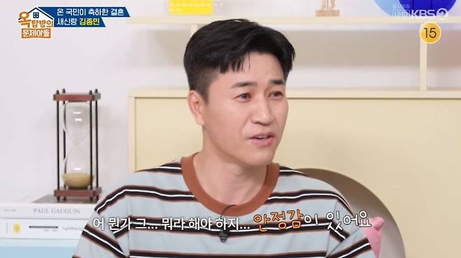 김종민은 결혼을 결심한 계기로 "다투면 전 잘 삐치는 스타일이다. 말을 제대로 못하는데, 아내가 그걸 잘 풀어준다"라고 했다. 최근 삐친 일화로 "1990년대 노래 듣는다고 했더니 옛날 노래를 듣냐고 하더라"고 했고, MC들은 "그게 무슨 삐칠 일이냐. 너무 사소해서 아내분도 화내기도 민망하겠다"라고 입을 모아 웃음을 안겼다.
