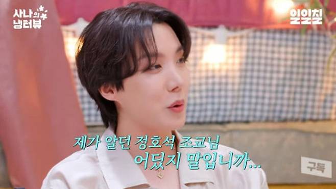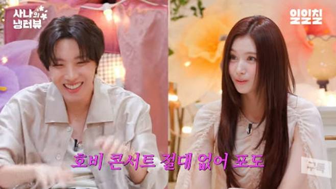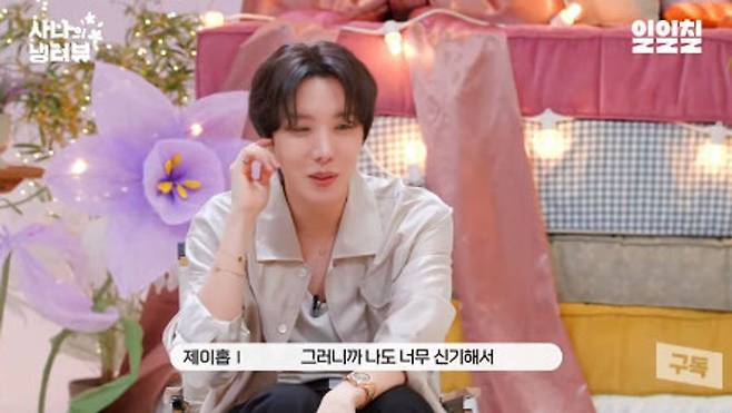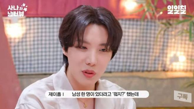 19일 온라인 채널 일일칠의 ‘사나의 냉터뷰’에선 제이홉이 게스트로 출연해 사나와 토크를 펼치는 모습이 담겼다.