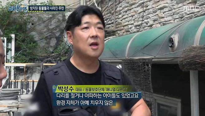 제작진은 당시 현장에서 라이브를 진행했던 동물보호단체를 만났다. 동물구조단체 '쏘바이' 안소영 대표는 "동물들이 방치된 현장을 제보받고 두 단체가 연대를 해 현장에 왔다"라고 말했다. 동물보호단체 '애니멀 디펜더' 박성수 대표는 "다리를 절거나 아파하는 아이들도 많고 환경 자체가 아예 치우지 않은 쓰레기장이었다"라고 전했다.