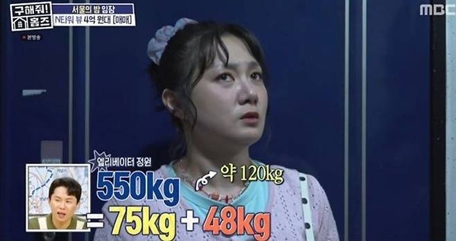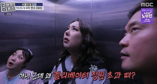식사를 마친 세 사람은 임장 장소인 성곽길 옆 아파트를 방문했다. 엘리베이터를 탄 이들은 정원 초과 경고가 뜨자 당황했다. 풍자는 "이거 미스터리다. 무게 계산해보자"며 김대호와 박나래에게 체중을 물었다. 김대호는 75㎏, 박나래는 48㎏이라고 했다.
