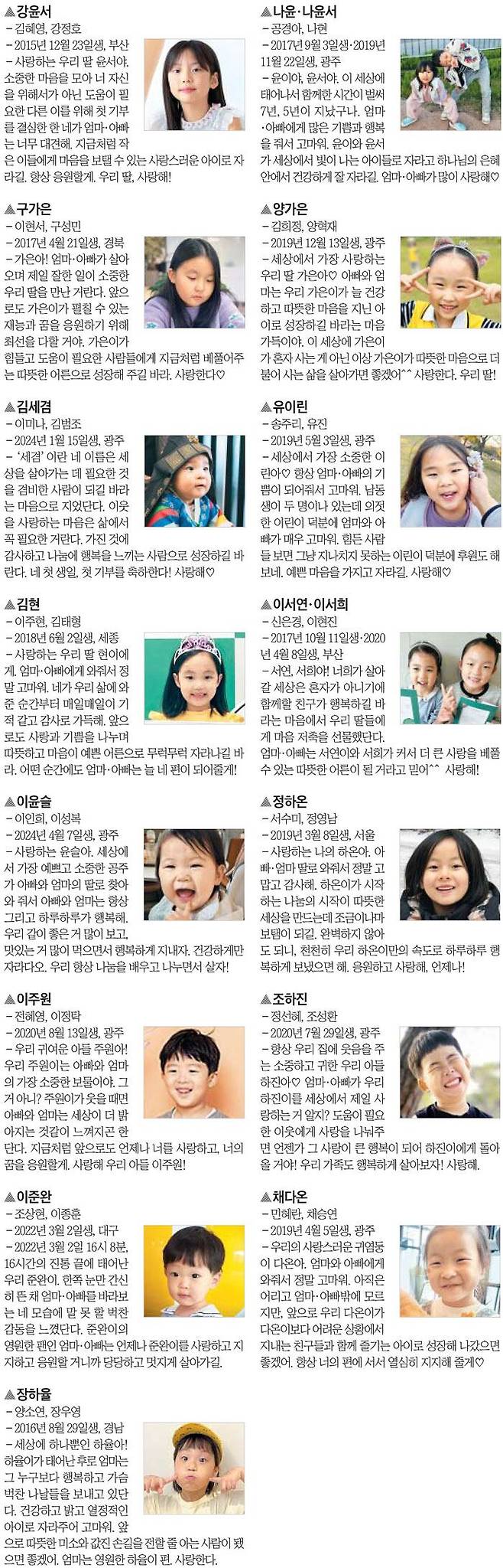 아이에게 나눔의 기쁨을 선물해 주세요. 아이 첫돌이나 생일 등을 기념해 초록우산 홈페이지(www.childfund.or.kr)의 ‘우리 아이 첫 기부’ 사이트를 통해 참여하실 수 있습니다. 매일아이 사이트(maeili.com)에서도 가능합니다. 매달 기부에 참여한 가족과 아이의 사진, 기념하고 싶은 날과 사연을 조선일보 ‘아이가 행복입니다’ 지면에 소개합니다. 엄마와 아이를 위한 매일유업 ‘매일두 포인트’ 3만원과 기부 소식을 조선일보 1면 머리기사로 제작한 PDF 파일도 함께 드립니다.