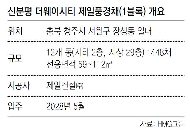 HMG그룹이 주도하는 신분평 도시개발사업은 충북 청주시 서원구 장성동 일원에 3개 블록, 총 3949채를 조성하는 사업이다. 블록별로 보면 1블록 1448채, 2블록 993채, 3블록 1508채다. 공동주택과 준주거 시설을 비롯해 공원, 초등학교 등 각종 기반 시설이 함께 들어서게 된다.