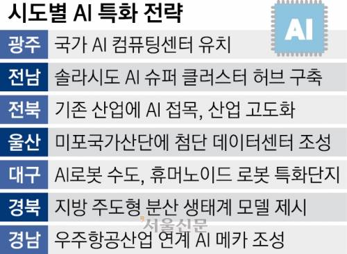 AI 산업은 막대한 자본과 인재가 필요해 지자체마다 특수성과 당위성을 내세워 정부의 정책 지원을 요구하는 상황이어서 국정과제에 지역별 AI 육성 정책이 어떻게 반영될지 주목된다.