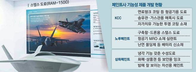 KCC 관계자는 “전투차량이 눈에 띄지 않게 하는 위장도료, 항공기 연료탱크 내부 코팅, 미사일 외피 특수도장 등 무기체계 전반에 적용되는 도료를 생산하고 있다”고 말했다.