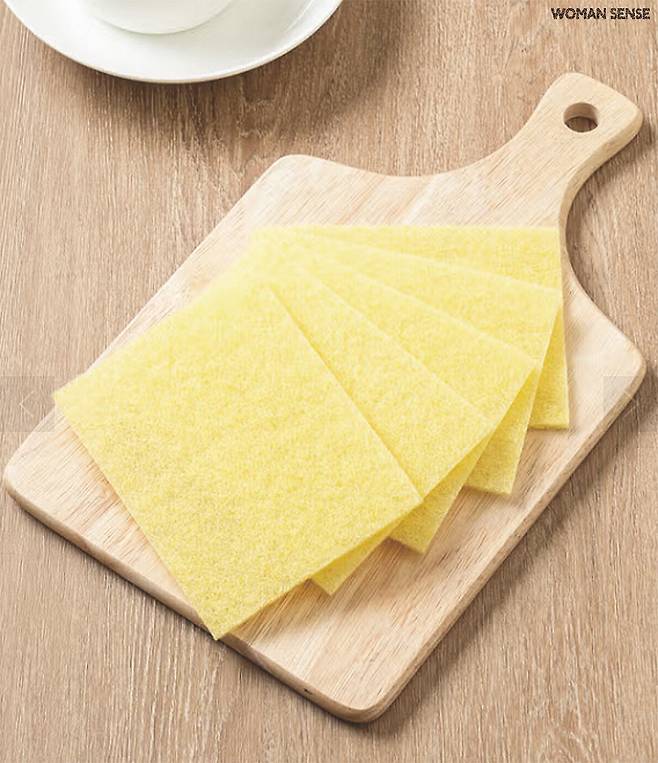 물만 묻혀 바로 사용하는 세제 수세미. 1종 주방 세제를 함유해 설거지뿐 아니라 식재료를 씻거나 주방 청소를 할 때 써도 좋다.