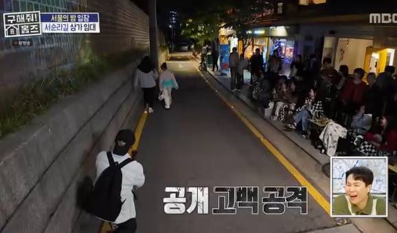 여기서 그치지 않고, ‘서순라길’ 임장 중 김대호는 모자를 거꾸로 쓰며 젊은 감성을 시전, 느닷없이 “이런 데서 빔 프로젝트로 프러포즈도 하잖아. 마지막에 내가 나오는 거야!”라며 갑자기 무릎을 꿇고 공개 고백 시뮬레이션에 돌입했다.